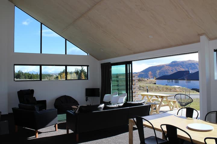 Light and sunny, with large sliding doors opening from the spacious living and dining area to the patio.  This house is warmed by the heat-pump and log fire.