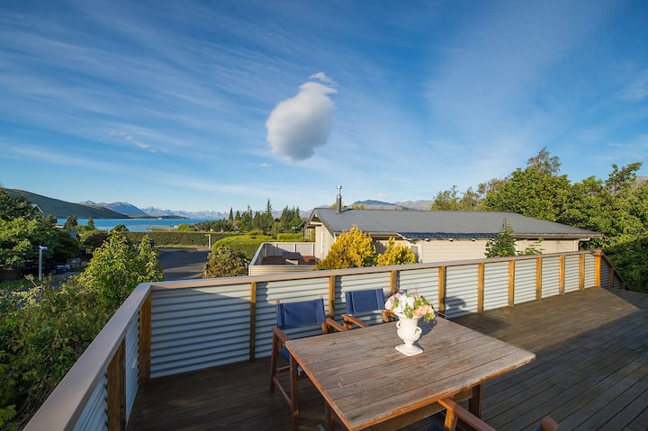 Church View is an older, wooden holiday home, with lots of character and beautiful views of the lake, church and mountains.  A large sunny deck is fantastic for star-gazing.  Stay cosy in winter with log fire and heatpump.