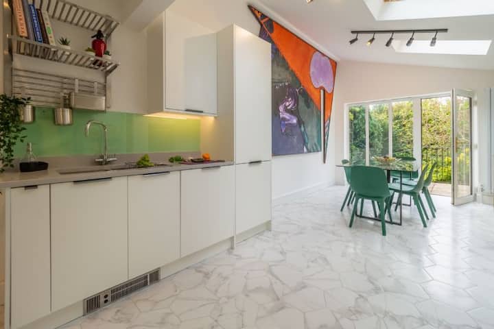 A fabulous mix of period, retro and contemporary makes this stylish family house stand out from the norm. Tucked away on a peaceful private drive, yet only a short walk away from the heart of this popular coastal village and its wonderful beach.