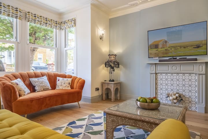 St Edmunds View, named after the nearby church and the 12th century Chapel that now stands as a ruin atop the Hunstanton cliffs, is a wonderfully curated home for groups that are looking for elegant accommodation where all guests can enjoy excellent facilities. A truly authentic arts and crafts property, made from the locally quarried red carrstone, that has been lovingly brought into the 21st century through bespoke furnishing and a keen eye for the details. Can also be booked as a four bedroom