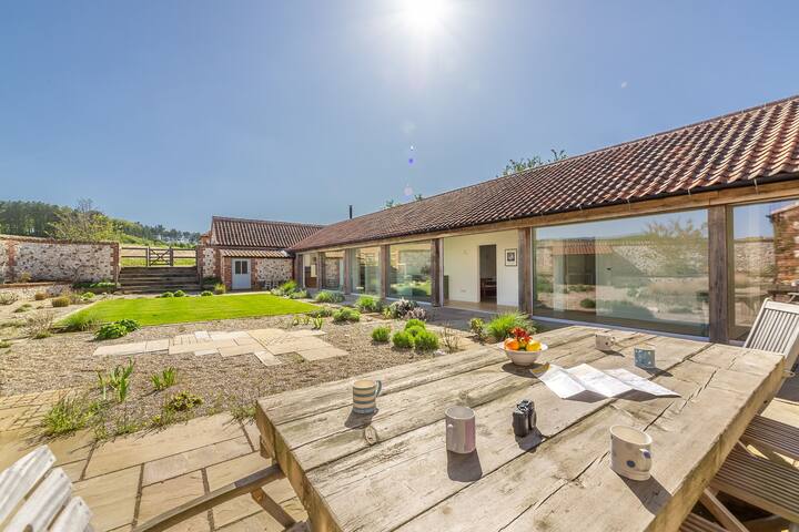 The Cart Shed is an enchanting luxury self-catering coastal barn, set in an unrivalled position in the rolling North Norfolk countryside, a stone's throw from the beautiful sandy beaches of North Norfolk. Idyllically situated and in easy reach of the sailing facilities at Brancaster Staithe, the sandy beaches at Brancaster and Norfolk's loveliest village, Burnham Market, this coastal retreat is unique in every way.