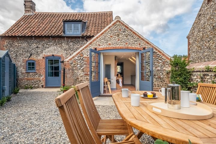Standing alone and unloved for many a year, this Grade II listed flint cottage, reputedly one of the oldest in the village, has been given a new lease of life, with a lot of love, care, respect and attention to detail and now, with its bright yellow front door, sits high and proud and full of joy.