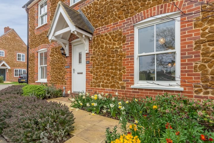 A superb haven in an enviable position, enjoying open country views and a generous corner plot on a prestigious small development, peacefully tucked away on a quiet lane on the edge of the delightful village of Snettisham.