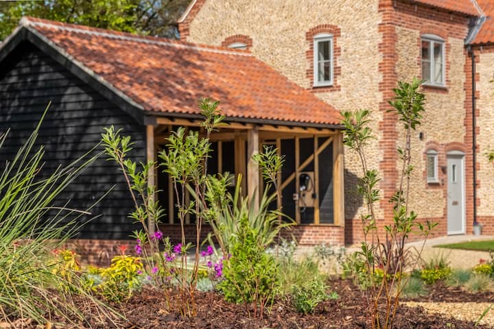 A super brick and flint modern semi-detached house, tucked quietly away in a prestigious development of just five properties located on the western edge of the thriving, ever popular village of Burnham Market, and only a short walk away from its busy hub and many amenities.