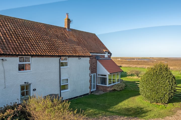 With some of the best views in Brancaster, Sandpipers is a surprisingly spacious end terrace cottage overlooking the salt marshes and the sea beyond.