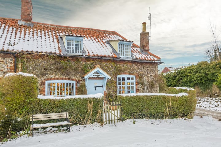 Brooke Cottage is everything you could imagine in a traditional old Norfolk cottage, with features including a huge inglenook fireplace with a wood burning stove, pine latched doors, a brass bed and views over the village green.