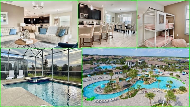 Start your vacation right in this beautifully decorated 6-bedroom/5-bathroom villa in the Champions gate community. The lovely and cozy décor will make you feel right at home.