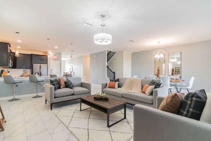 This gorgeous and spacious nine-bedroom/five-bathroom home is sure to impress you from the moment you arrive. The ample living space is perfect for large groups or families.