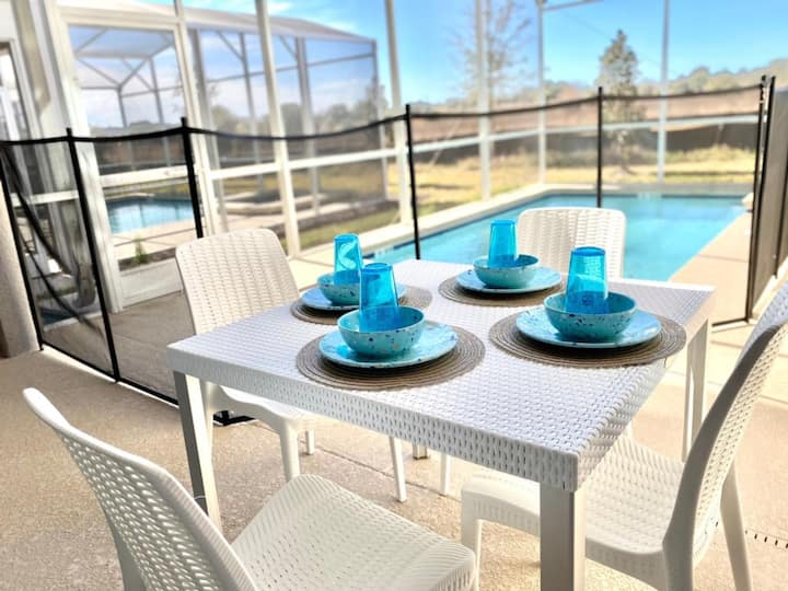 Start your vacation right in this beautifully decorated 5-bedroom/5-bathroom villa in the Champions gate community.