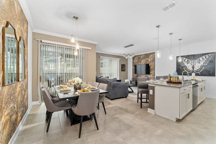 This four-bedroom/three-bathroom home is sure to impress from the moment you arrive. Enter and be wow-ed by the chic décor and ample living, dining, and kitchen space. Temporary structures are strictly forbidden by the HOA.