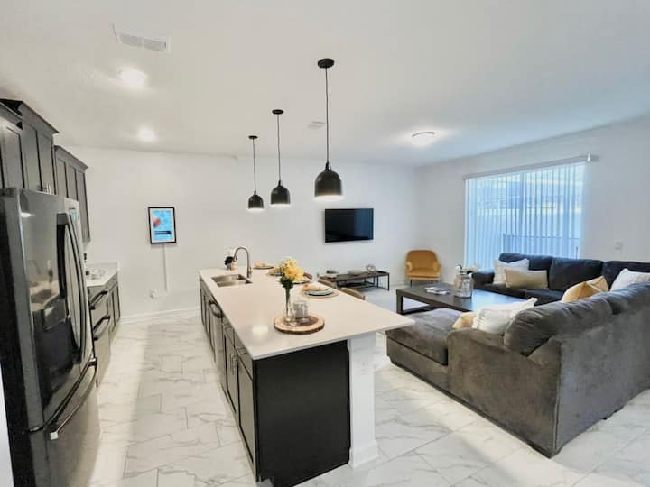 Your dream vacation awaits you! Starting with your arrival at this lovely four-bedroom/three-bathroom townhome. Feel instantly at home once you walk into the open living room, dining room, and kitchen space.