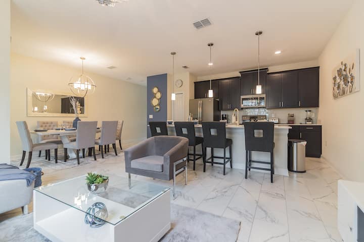 Your dream vacation awaits you! Starting with your arrival at this lovely four-bedroom/three-bathroom townhome. Feel instantly at home once you walk into the open living room, dining room, and kitchen space.