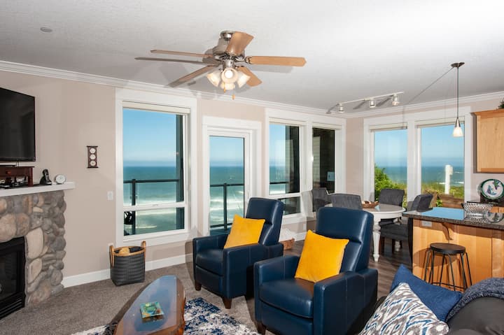 Longing to get away from it all without giving up the conveniences? This end unit beckons you with 270 degree views of the breathtaking Oregon coastline, and luxury amenities.