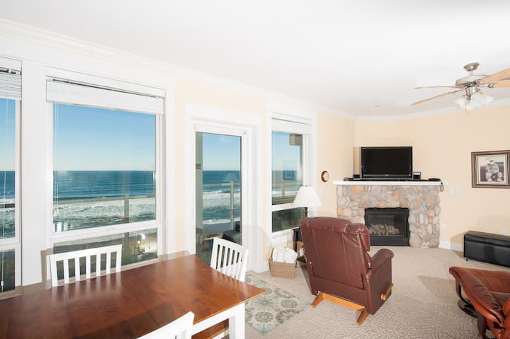 Visit Dancing Dolphins for stunning second floor views of the Pacific Ocean. Scout for grey whales from your balcony, or snuggle up before the river rock fireplace for a Blu-Ray movie on the HD television.