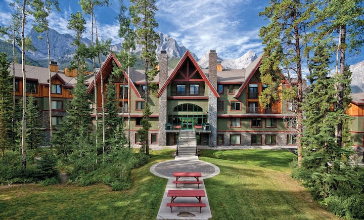 Just 7 miles from Banff National Park, the town of Canmore is a four-season destination where you can hike, bike, fish, swim, ski, snowboard, go dog sledding and more! Enjoy stunning views of the Canadian Rockies from the windows of your spacious studio suite, which sleeps two guests and features a queen bed and a kitchenette. Enjoy the resort's pool, hot tubs, fitness center, laundry facilities, barbecue grills and recreation room, with big chairs, TV, pool table and fireplace.