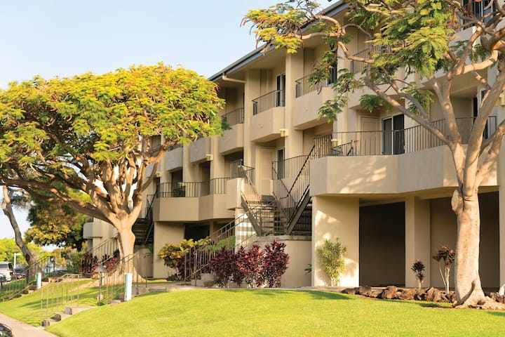 15 minutes away from Kohala Coast and sandy white beaches - Paniolo Greens is surrounded by golf courses, restaurants, shopping, and beachfront bars. Back at the resort, experience fun at the swimming pool or attend hula dancing and lei making classes. This suite offers a king bed in the master bedroom, queen bed in the guestroom and a sleeper sofa in the living room. Additional amenities include a kitchen and dining area, washer/dryer, and a lanai. Contact host for accessible dimensions.
