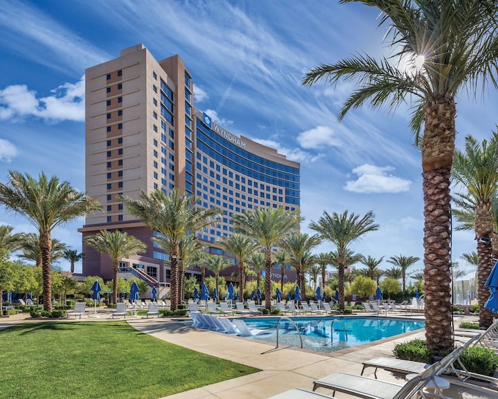 Bright lights, slot machines and roulette wheels - Vegas knows how to tickle the senses. A desert oasis of hospitality, Club Wyndham Desert Blue is tucked away one mile off The Strip and offers a one-bedroom resort suites that sleep up to four guests with a full kitchen and separate living areas. The one-bedroom suite offers a private room, separate dining area and views of The Strip. Enjoy two outdoor pools and hot tubs, cabanas, poolside bar and grill, a fire pit and fitness center.