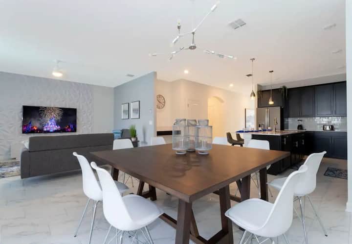 LUXURY Villa at Champions Gate - 6 bedrooms, 5 bathrooms, house is newly furnished, w/ fully equipped kitchen, private pool, barbecue grill. Featuring resort amenities included golf course, multi-sports courts, tennis courts and water park. The house is close to groceries, supermarkets, restaurants and plenty of malls.