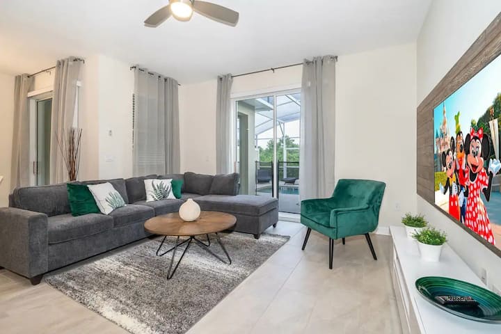 The townhouse in Davenport has 4 bedrooms and has capacity for 10 people.