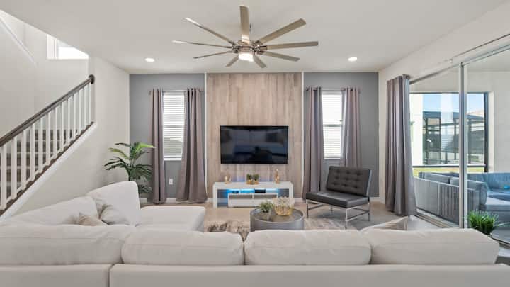 luxury Villa at Solara Resort - 6 bedrooms, 5 bathrooms, house is Brand new w/ fully equipped kitchen, private pool, barbecue grill. Featuring resort amenities, multi-sports courts, and water park. The house is close to groceries, supermarkets, restaurants and plenty of malls.