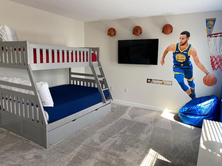 This gorgeous and spacious nine-bedroom/five-bathroom home is sure to impress you from the moment you arrive. The ample living space is perfect for large groups or families.