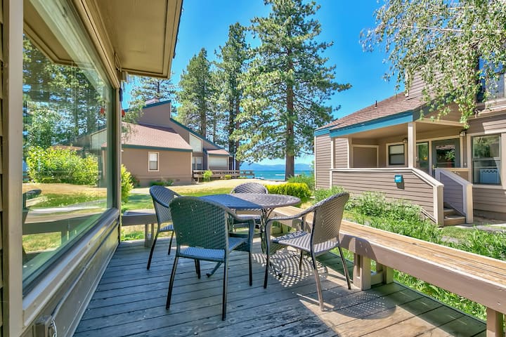 One of the perks of this 4BR (plus loft) townhome is instant access to the beach, pools, hot tub, sauna, fitness center and many other amenities of the fabulous Lakeland Village. A remodeled kitchen and tasteful décor makes for a comfortable stay for a family of 12. It’s just steps to the beach and lakeside pool, 2 miles to Heavenly Resort and 3 to the casinos.