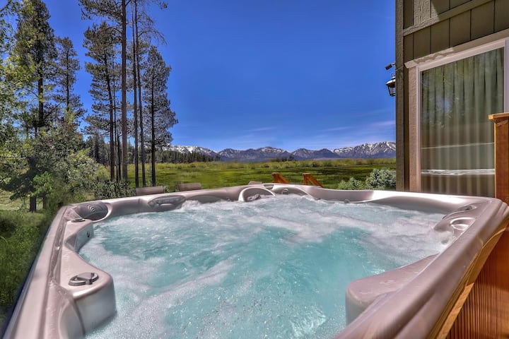 Watch the sun set behind the Sierras from the comforts of your backyard hot tub, or recline on the sofas and keep an eye out for wildlife. This stunning 4BR remodel offers everything needed for complete relaxation, including a fenced yard for the family dog and A/C.