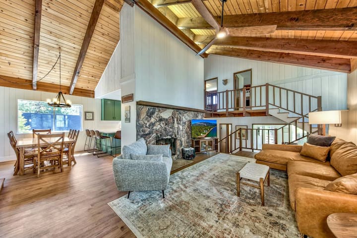 Cold Creek Retreat has a personality of its own with stylish, mid-century decor inside and filtered views of the mountains outside. The backyard opens up to Cold Creek Trail, which connects you to an entire network of South Lake Tahoe’s best hiking trails.