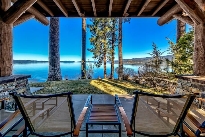 Unobstructed 180-degree views of the lake, a chef’s kitchen, private patio with high-end grill for experiencing Tahoe’s amazing sunsets set this sumptuous home for 6 apart. Part of the exclusive PEAK group, this luxury air-conditioned lakefront property has been designed with meticulous attention to detail. You’ll also enjoy mattresses from the Four Seasons hotels, Frette linens and the privacy of an exclusive gated community.