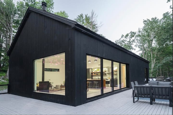 Tamarack House is a peaceful and modern cabin near Narrowsburg, a riverfront town in the Catskills, located 2 hours from NYC.