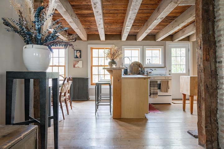 1880s home steps from all the restaurants, shops, and bars. Two-way fireplace, exposed beams on first floor kitchen/living area. Second floor loft, spacious bathroom--with rain-shower and clawfoot tub--and bedroom overlooking private landscaped yard with deck.