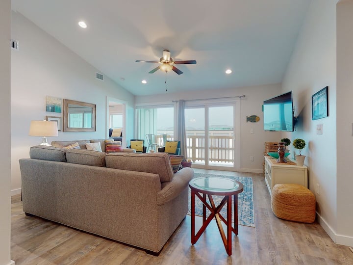 Aransas Harbors E218 is a beautiful two bedroom, one bath condo located only five minutes from the beach and across from the shared pool and charcoal grills.