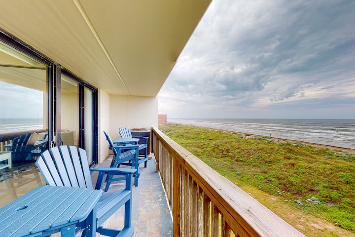 Enjoy an incredible ocean view at MT404, a 3-bedroom, 2.5-bathroom condo that sleeps 8 comfortably.  At Mustang Towers, you can enjoy a prime location that offers easy access to the beach via the boardwalk, a generously sized shared pool and hot tub, and a convenient 10-minute drive to Port A.  Experience the ultimate coastal vacation, where you can unwind and indulge in an upscale atmosphere that caters to your every need.