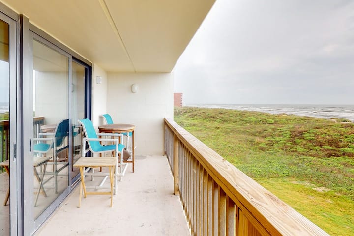 Enjoy an incredible ocean view at MT202, a 2-bedroom, 2-bathroom vacation condo that sleeps 6 comfortably. The kitchen is fully equipped with all your culinary needs. At MT202 you are walking distance to the beach just over the boardwalk and a short 10-minute drive to Port A. Come see all Mustang Towers has to offer!