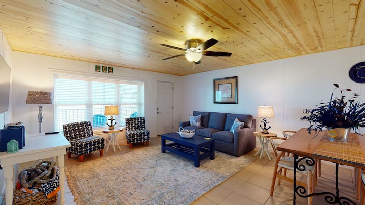 This updated, beautifully decorated three-bedroom 2 bath condo has gorgeous beach views from the second-floor balcony.