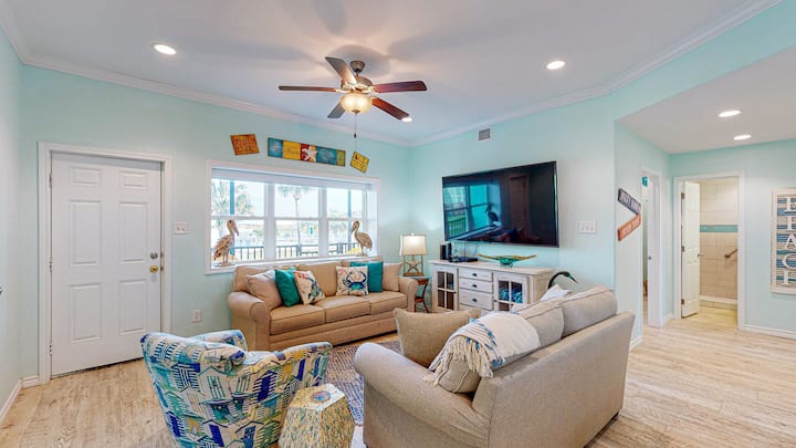 Shorely Blessed is a 2-bedroom, 2-bathroom condo in a resort setting complex in Port Aransas, Texas which sleeps up to 8.
