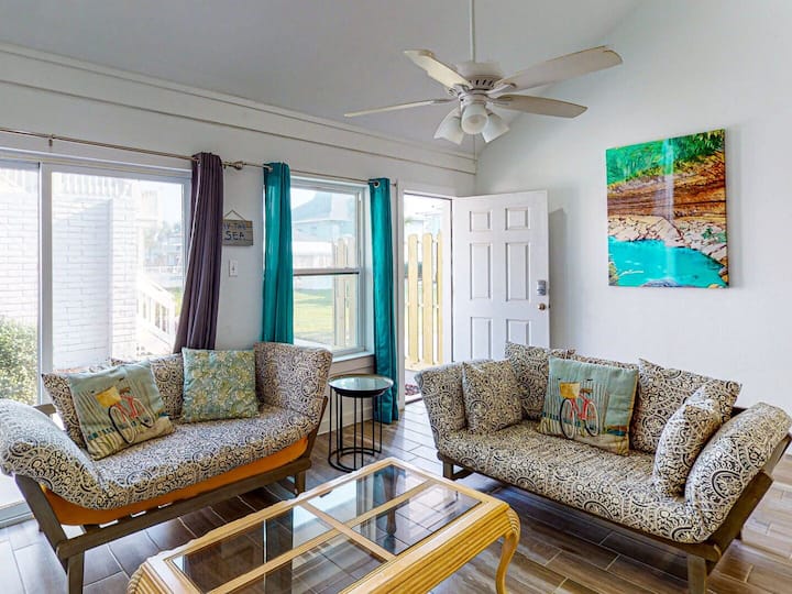 Enjoy the peacefulness of El Cortez on Mustang Island, just three miles south of Port Aransas. Use the golf cart accessible boardwalk to spend a day at the beach.  El Cortez is just five minutes from Port Aransas offering a variety of restaurants, shops, nightlife and fishing charters.