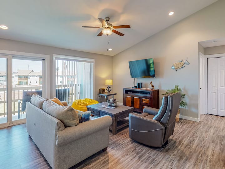 Reel Getaway is a newly remodeled, second floor condo has an open floor plan and overlooks the shared pool/hot tub and grilling area from the back balcony. Enjoy the close walking proximity to the Marina and Roberts Point Park to fish, play on the small playground and to watch the dolphins. Shops, restaurants and nightlife are only 0.5 miles away and it is a short 1.3 mile drive to the beach. Great location!