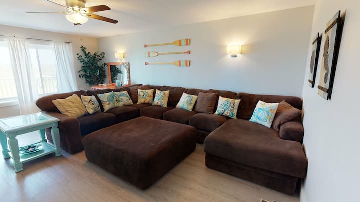 Your beach vacation awaits you at this gorgeous ground-floor condo which accommodates up to eight guests. The tropical foliage greets you as you enter the front door. Inside, bursts of colorful coastal décor and furniture welcome you to island living.