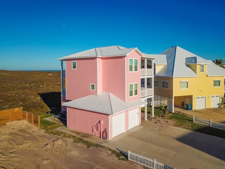 Enjoy incredible panoramic views of not just the ocean and sand dunes over which you can see the sunrises, but also 70 acres of wild salt grass and a view of the bay for watching Port A sunsets.
