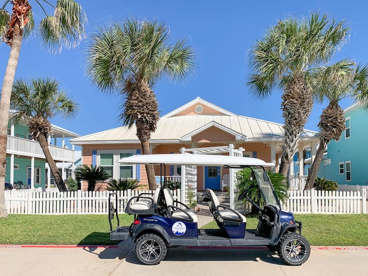 The garage has been converted into a game room with a ping pong table, foosball table, and TV (with Roku).  Step in the backyard and enjoy a coastal oasis with your Private Hot Tub, Tiki bar and Rooftop Deck. You can walk to the beach or drive your golf cart on the boardwalk.
