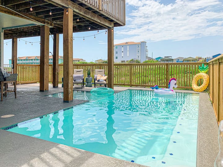 This large, unique 3 bedroom beach home has an open floor plan with coastal chic décor inside and Gulf views from the back deck. Located in the La Playa neighborhood of Port Aransas, one of the closest neighborhoods to the beach, with private boardwalk.