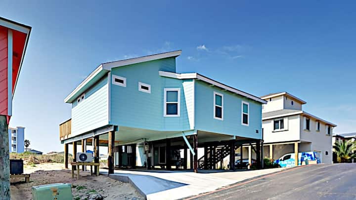 New master suite has recently been added to this 1 story beach home on stilts. This is a great place for a family vacation with boardwalk and ocean views from deck. You will enjoy one of the best ocean views in Port Aransas.