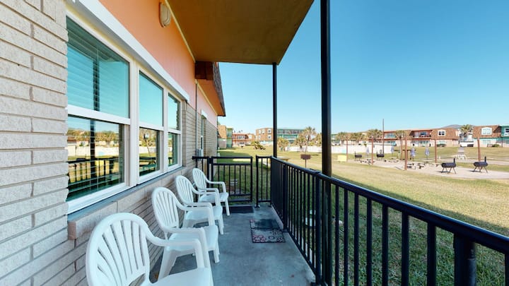 This is an inviting 2-bedroom ground-floor condo .You can step out on the private patio to sip your morning coffee while looking at the courtyard and pool area. Located near downtown Port A, you have easy access to the golf course, shopping, restaurants, and beach access with walkways over the dunes.