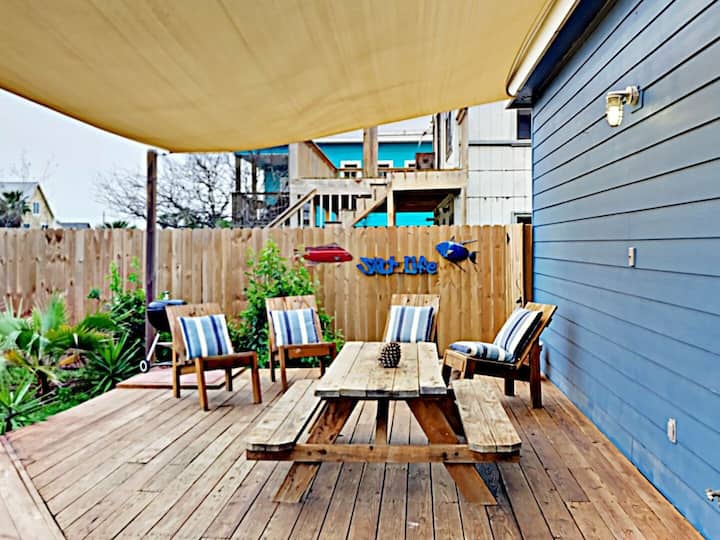 2 Bedroom 2 bath  Perfect hideaway spot with a great fenced patio area. Has grill with a shaded area for outdoor dining. This house is close to the beach and has been completely renovated with a layout perfect for combined groups.