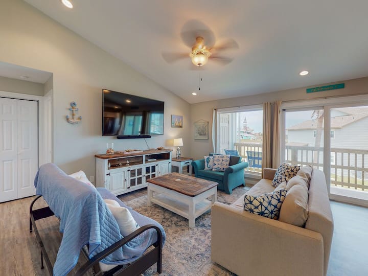 The Shipyard is a newly remodeled 2nd story condo with a Nautical & Beachscape theme and a color pallet of ocean and sand throughout. Take pleasure in sipping your morning coffee while sitting on the private balcony which faces the ship channel.