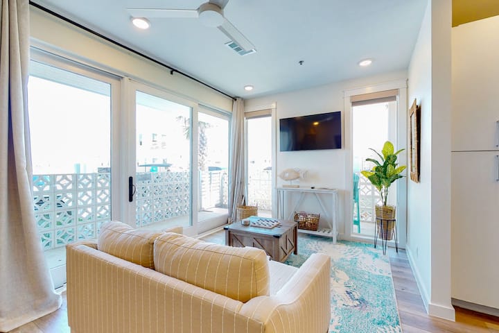 The perfect spot for your next Port Aransas beach getaway! Coastal Casita at Sunflower Beach Resort is a 1BD, 1BA, breathtaking first-floor ADA-compliant condo with beautiful interiors: a shared elevator, an indoor and outdoor space for lounging, and incredible accommodations for four guests.