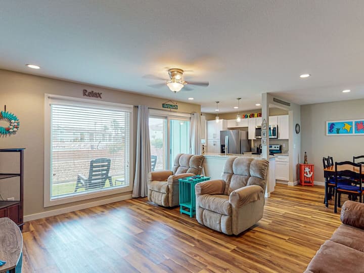 This newly remodeled first floor condo has a view of the shared pool, hot tub and grilling area from the patio area, kitchen and living room. Enjoy the close proximity to the Marina to watch the dolphins. Shops, restaurants and bars are only 0.5 miles away and it is a short 1.3 mile drive to the beach.