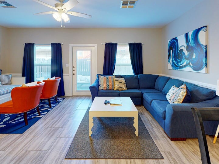 This upscale unit sits near the shared, heated saltwater pool with a fun slide for kids and numerous palapas for shade. If you are looking for a great location central to all that Port Aransas has to offer, look no further.
