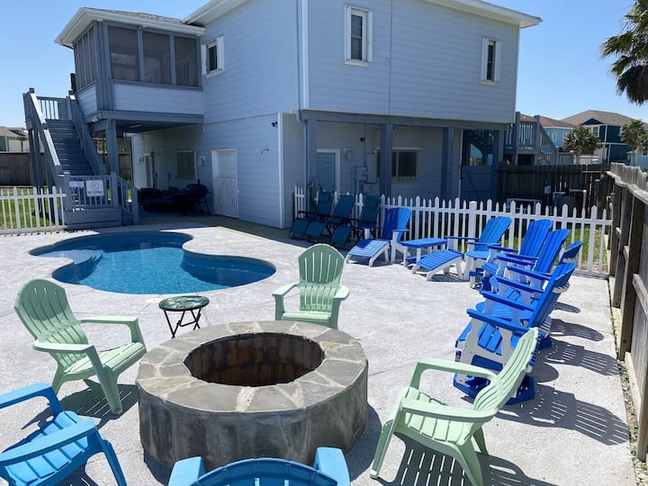 Welcome to the beautiful beach house of LA OLA VIDA! This 4 BD, 4 BA beach home is located in the heart of Port Aransas and close to the beach. This home is perfect for those looking to enjoy a beach getaway with family and friends. It features a fully equipped kitchen, dining table for 8, private pool, fire pit, washer/dryer, and TV's in all rooms. Enjoy your coffee from the upstairs deck or by the private pool!